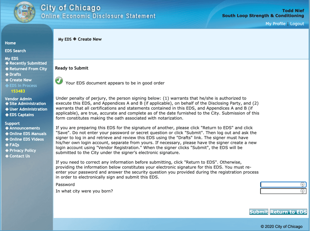 After submitting a grant application, I received an email noting that I needed to fill out an EDS (Economic Disclosure Statement). Sure.