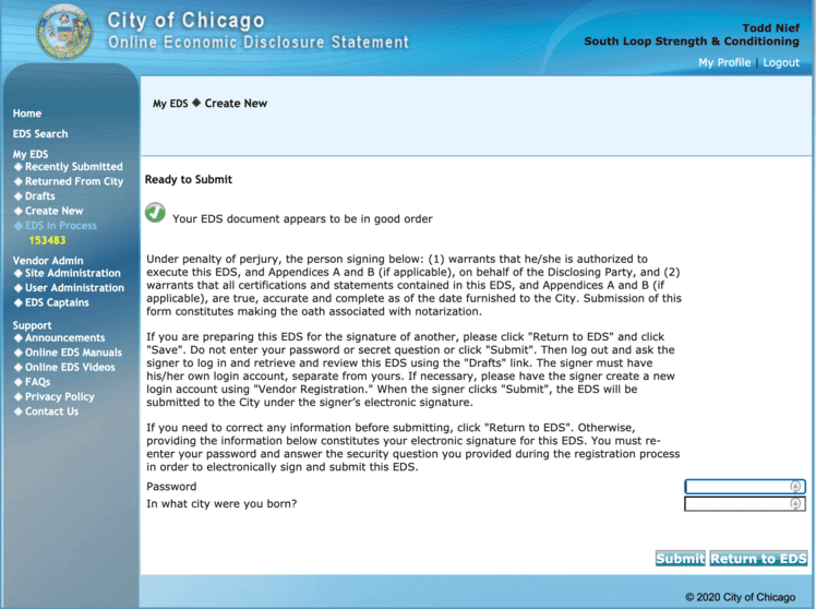 After wading through this mess of questions, it really honestly seems like you’re done and you’ve completed your Economic Disclosure Statement. The final button that you click might even say something like “Submit.”